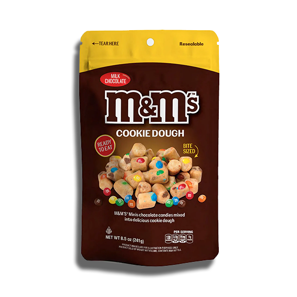 Enjoy a delicious combination of M&M's minis and cookie dough with this ready-to-eat M&M's Cookie Dough Bag. Each bag contains M&M's minis chocolate candies mixed in to give a unique taste to the classic cookie dough. Perfect for a snack or a dessert, you won't be able to go back to regular cookie dough.