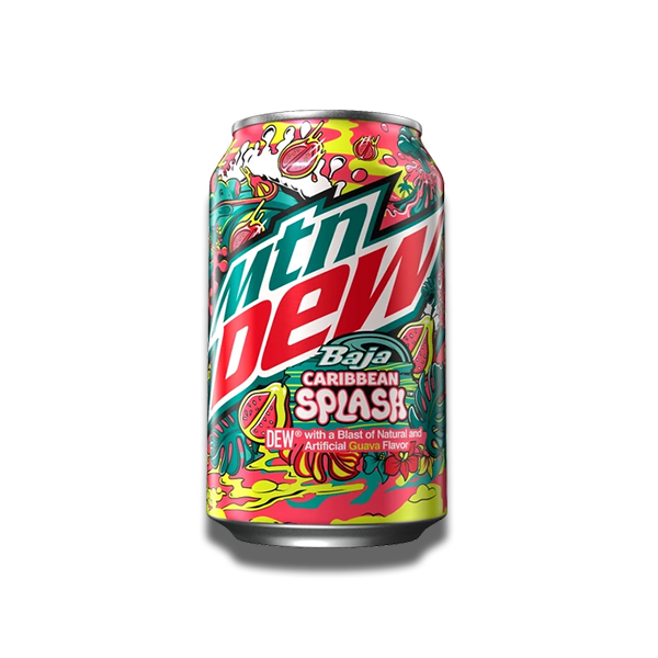 Introducing Mountain Dew Baja Caribbean Splash - a new flavor with a blast of natural and artificial guava flavor. Enjoy a refreshing taste of the Caribbean right in your own home. With a unique blend of sweet and tart flavors, Mountain Dew Baja Caribbean Splash is the perfect way to cool down.