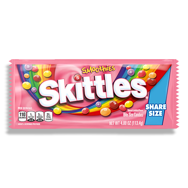 Skittles Smoothies Share Size is a great addition to your snack shelf but won't last long. Try this Skittles Smoothies and see what you were missing on!