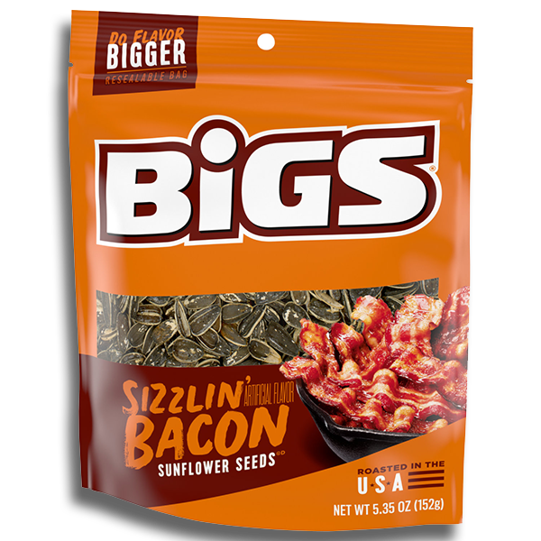 Bigs Sizzlin Bacon Sunflower Seeds is going to flavor your world. Try Bigs Sizzlin Bacon Sunflower Seeds today and see for yourself what you have been missing out on!