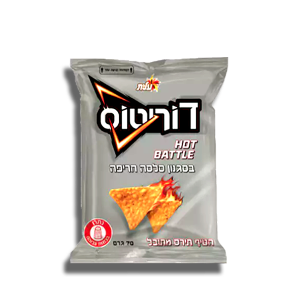 Experience a unique, bold flavor with Doritos Hot Battle Spicy Salsa chips from Israel. These chips are crafted with a special blend of spices, delivering a well balanced and bold taste. Perfect for snacks and parties, Doritos Hot Battle Spicy Salsa chips are sure to be a hit.