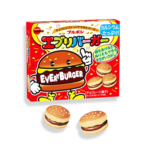 These unique EveryBurger Chocolate Filled Cookies from Japan are sure to please. Each cookie is shaped like a burger with a decadent chocolate filling, making them a delicious treat for dessert or snack time. Made with the highest quality ingredients, these treats will bring a delightful sweetness to your day.