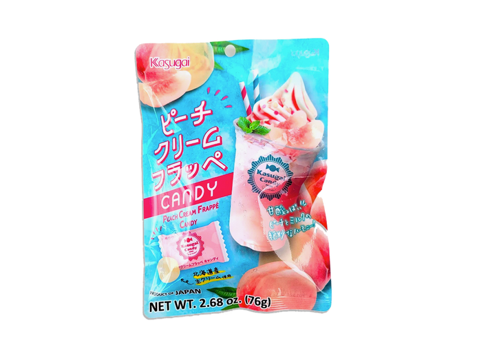 Kasugai Peach Cream Frappe Candy from Japan are great addition to your snack shelf but won't last long. Try this Kasugai Peach Cream Frappe Candy and you won't be disappointed.