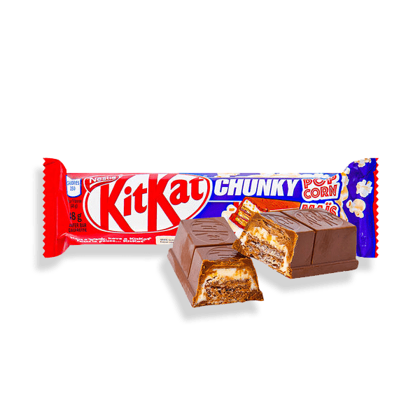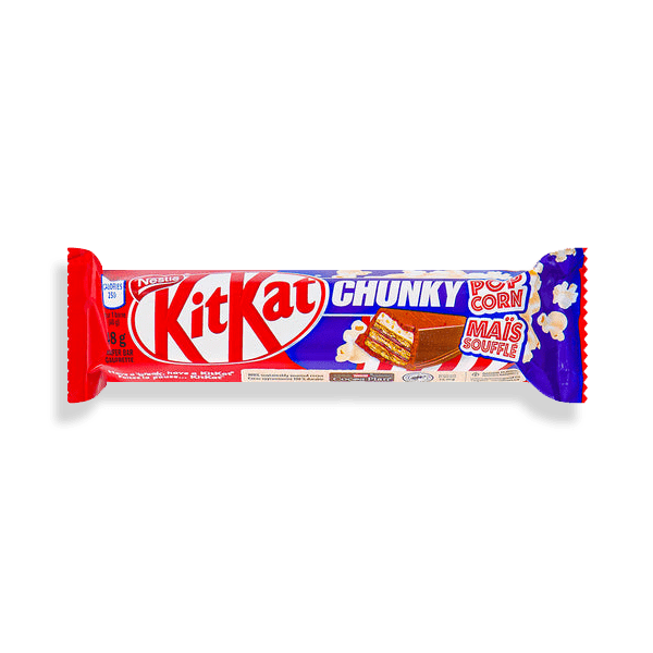 Kit Kat Chunky Popcorn from Canada is a great addition to your snack shelf but won't last long. Try this Kit Kat Chunky Popcorn and you won't be disappointed.