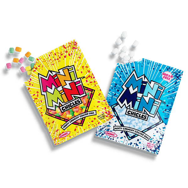 Blast from the Past! Remember shaking out one piece at a time or popping in five at once? This tiny childhood favorite is sure to put a big smile on your face. Mini Mini;s are candy-coated fun that never gets old. Available in Fruity Crunchy Coated and Minty Crunchy Coated gums.