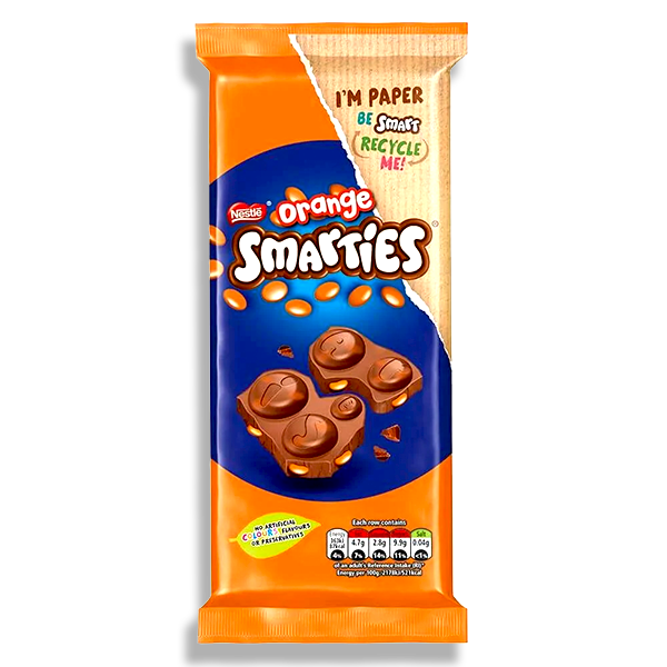 Smarties Orange Chocolate Block from UK is a great addition to your snack shelf but won't last long. Try this Smarties Orange Chocolate Block and see what you have been missing out on!