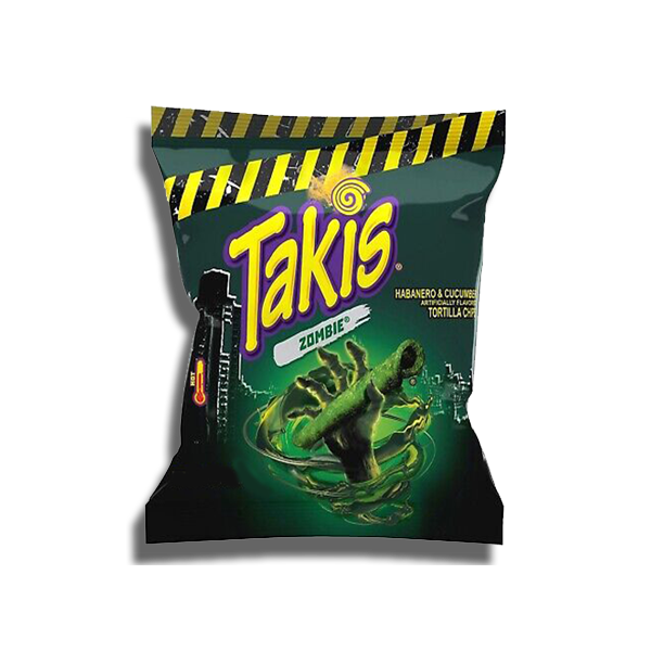 Takis Zombie Habanero & Cucumber chips are a unique combination of Mexican flavors, delivering a powerful, authentic taste. Delivering the perfect balance of heat and cucumber, these artificially flavored tortilla chips are sure to please all fans of bold, intense snacks.