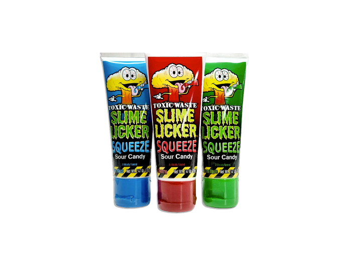 Toxic Waste Slime Licker Squeeze Sour Candy is ready to brighten up your day. Try this Toxic Waste Slime Licker Squeeze Sour Blue Razz, Cherry or Green Apple today and see for yourself what you have been missing out on!