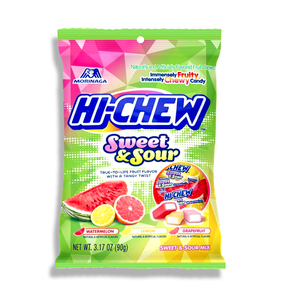 Hi-Chew Sweet And Sour is a great addition to your snack shelf but won't last long. Mixed flavors Watermelon, Lemon and Grapefruit. Try this Hi-Chew Sweet And Sour and see what those fantasy mix tastes like.