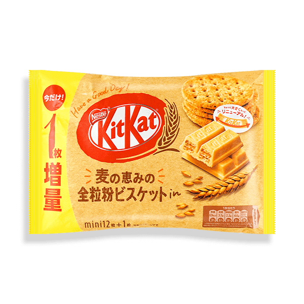Kit Kat Mini Whole Wheat from Japan are great addition to your snack shelf but won't last long. Try this Kit Kat Mini Whole Wheat and you won't be disappointed.
