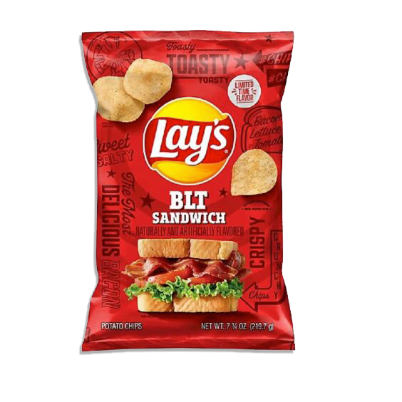 Introducing Lay's BLT Sandwich Flavor chips - a delicious salty snack with the flavor of a classic BLT sandwich. Made with natural and artificial ingredients, these chips provide the perfect blend of savory and smoky flavors. Enjoy them as a savory snack or a tasty side dish.