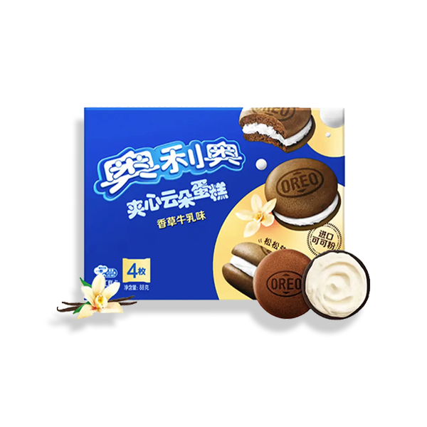 This pack of 4 Oreo Vanilla Soft Cakes from China is sure to satisfy your sweet tooth! Made with real Oreo cookie pieces, each cake is light and fluffy, giving you the perfect combination of vanilla and chocolate. Enjoy the delicious Oreo treat!