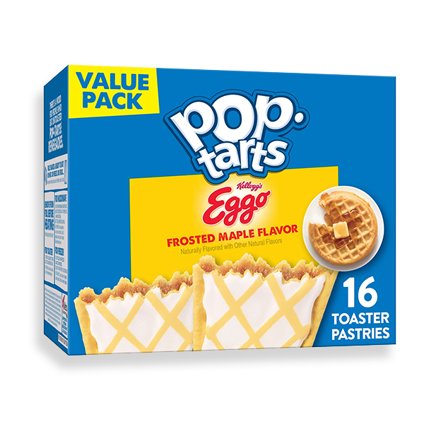 Pop-Tarts Kellogg's Eggo Frosted Maple Flavor 16 toaster pastries are great addition to your snack shelf but won't last long. Try this Pop Tarts Eggo Waffles Frosted Maple Flavor and see what you have been missing out on! BBD: ***02/2024***