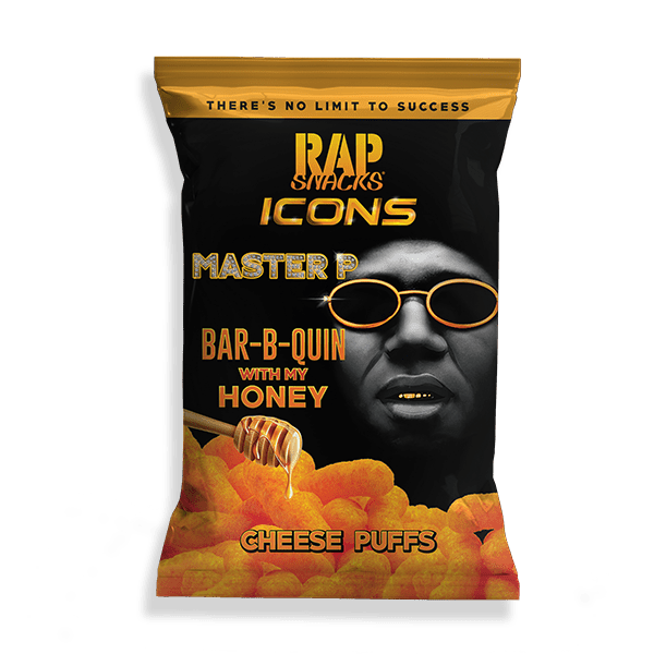 Experience a unique and flavorful snack with Rap Snacks' Master P Bar-B-Quin With My Honey Cheese Puffs or Chips! Featuring Rap Snacks' iconic icon and a delicious honey flavor, these cheese puffs or potato chips are sure to be a hit. Satisfy your snack cravings with Master P Bar-B-Quin!